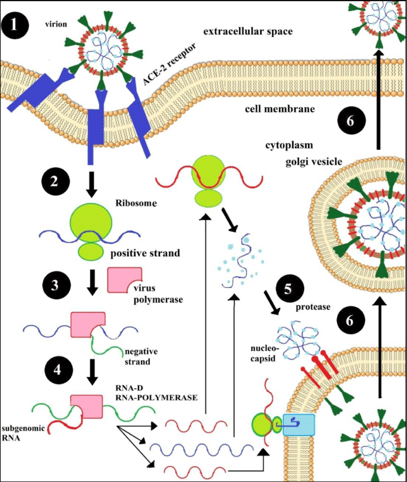 Figure 6: Replication pathway of SARS-CoV-2 in the host cells.